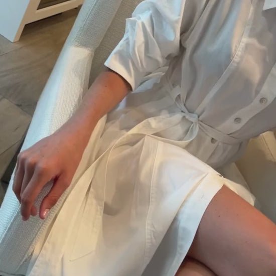 Classic Italian Shirt Dress — Timeless, crisp, and effortlessly chic. This tailored white shirt dress features a structured collar, cinched waist, and voluminous sleeves for a refined silhouette that transitions seamlessly from brunch to boardroom. A true staple for the modern woman.