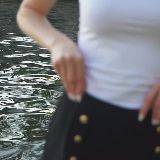 Ella Designer Button Shorts — Tailored and chic, these light-catching gold buttons add a polished touch to this elevated everyday short.