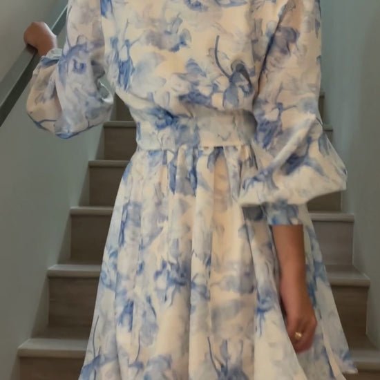 Vienna Watercolor Dress – Soft blue watercolor florals dance across a flowing silhouette, complete with airy sleeves, a button-down front, and a tie waist for a flattering fit. Effortlessly feminine, it’s perfect for brunch, garden strolls, or any day you want to feel beautifully put-together.